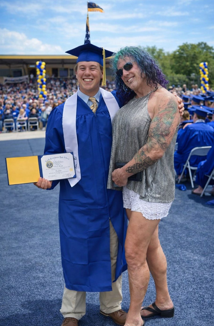 One hundred percent, Robert Dorgan should have felt “ashamed” to go out in public like this, particularly to his son’s high school graduation. But also to work, which he apparently did while employed as an electrician at a Maine shipyard.